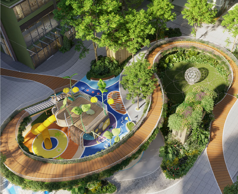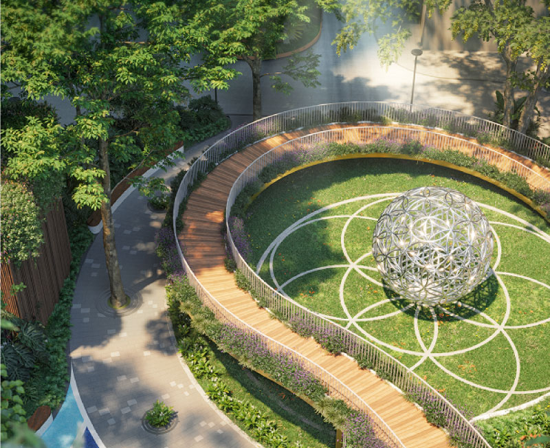 Zen Garden & Yoga Deck: Khu vườn thiền nhiệt đới kết hợp sàn tập Yoga ngoài trời, giúp cư dân tìm lại sự cân bằng giữa nhịp sống hối hả.